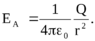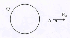 | Рис.7. Поле от сферы. | В качестве второго примера рассмотрим поле от заря-женной сферы, полный заряд которой равен Q. Если точ-ка А (см. рис7) , где требуется определить напряженность, находится вне заряженной сферы, то очевидно в качестве воображаемой поверхности выбрать сферу, концентри-ческую нашей заряженной сфере. В этом случае ЕА па-раллельно n, и Ф0 = ЕАS.Т.к.площадь сферы равна 4R2, то из теоремы Гаусса нетрудно найти: |