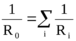 Для соединения нескольких проводников величина общего сопротивления R0 находится по известным правилам: для последовательного соединения R0 = Ri , а для параллельного