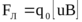 | Рис.26. Действие силы Лоренца на движущийся заряд. | как сила Лоренца, равна FЛ =q0uBsin. Учитывая, что скорость направленного движения заря-дов в проводнике – u –вектор, и что направление силы определяется по правилу правого винта, можно опреде-лить силу Лоренца как Сила Лоренца максимальна, когда скорость отдельного заряда перпендикулярна вектору В,и равна нулю, когда заряд движется параллельно силовым линиям магнит-ного поля. В первом случае заряд вращается по окруж-ности, радиус которой определяется законом Ньютона: |