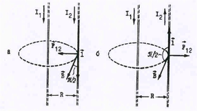 Направление силы взаимодействия для параллельных и антипараллельных взаимодейству-ющих токов показано на рис.24. Из рисунка видно, что параллельные токи притягиваются, а токи с противоположным направлением отталкиваются друг от друга.