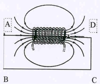 Применим теорему о циркуляции для вычисления поля на оси длинного соленоида. На рис.23 показаны силовые линии магнитного поля для катушки. Мысленно удлиняя ее, можно догадаться, что для достаточно протяженной катушки поле внутри соленоида и снаружи его будет направлено горизонально ( относительно рис.) Выберем контур в виде прямоугольникаАВСD так, чтобы сторона AD лежала на оси соленоида. Тогда циркуляцию