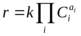 Для гомогенной реакции (реакции в одной фазе) скорость по одному из участников - изменение количества вещества (n) этого участника в единице объема в единицу времени(t), рассчитанное на единицу его стехиометрического коэфф.