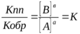 Константа равновесия р-ции - отношение произведения равновесных концентраций продуктов р-ции, возведенных в степени, равные их стех коэфф к произведению равновесных концентраций исходных в-в в степенях их стехиометрических коэфф.