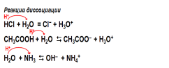 В кислотно-основных взаимодействиях участв две пары сопряженных к-т и основание: кислота отдает протон превращаясь в сопряженное с ней осн, а основание присоединив протон становится к-той.