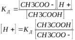 Слабые электролиты - в их р-рах присутств как ионы, так и молекулы р-ренного в-ва, и между ними устанавливается хим равн. Равн в р-рах слаб электролитов характеризуются константами равн. Константу равновесия, устанавливоющегося при дисс слабого электролита называют константой диссоциации. Они определены экспериментально.