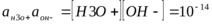 Вода как слабый электролит частично диссоц H20+H20↔H3O+ +OH-. При стандартных усл равн смещено влево и акт можно заменить равновесными конц.