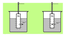 Ме из р-ра захватываются и пластинка заряж полож. Через некоторое время на границе раздела фаз устанавливается равновесие