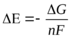 где n- число электронов, переходящих от в-ля к ок-лю, F - число Фарадея, ΔE - разность электрических потнциалов, возникающая между пластинками гальванич эл-та. (разность потенц - энергия, которую приобретает единичный электрический заряд при переходе из одной точки в другую)