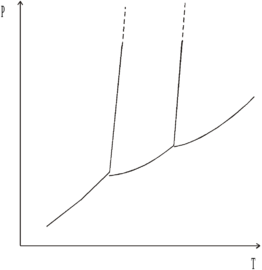 2) Определите координаты тройной точки А, если известно, что температурная зависимость давления насыщенного пара над ромбической серой описывается уравнением lgp(Па)=16.527-5172/T, а над моноклинной lgp(Па)=16.277-5080/T.