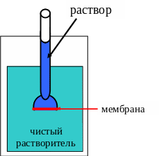 5.5. (а) Осмос (osmos – толчок, давление) – односторонняя диффузия растворителя через полупроницаемую мембрану, отделяющую раствор от чистого растворителя или раствора с меньшей концентрацией.
