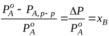 Относительное понижение давления пара растворителя над раствором равно мольной доле (хВ) растворенного вещества В.