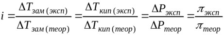 – изотонический коэффициент, показывает, во сколько раз число всех частиц в растворе больше числа исходных частиц.