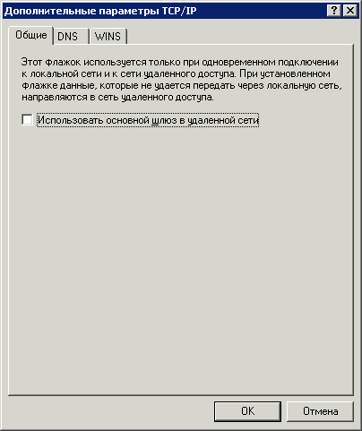 Снимите установленный по умолчанию флажок Использовать основной шлюз в удаленной сети.