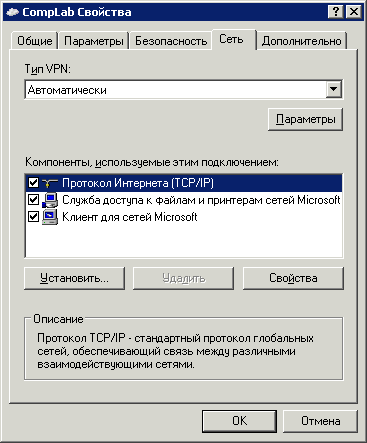 Найдите на рабочем столе ярлык CompLab и дважды щелкните по нему, затем в открывшемся окне Подключение: CompLab щелкните Свойства. Откроется окно CompLab Свойства.