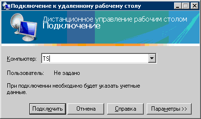 Запустите программу для подключения к удаленному рабочему столу. Для этого на панели задач щелкните Пуск, в открывшемся меню выделите Все программы, затем Стандартные, после чего выберите Подключение к удаленному рабочему столу. В появившемся одноименном окне в поле Компьютер введите TS (можно также ввести IP-адрес 10.1.1.11) и щелкните Подключить.