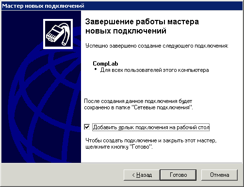 В последнем окне установите флажок Добавить ярлык подключения на рабочий стол