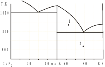 4. На рис.1 приведена схема фазовой диаграммы двухкомпонентной системы KF - CaF2.