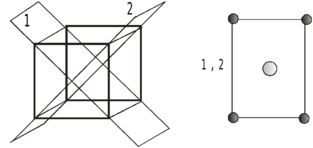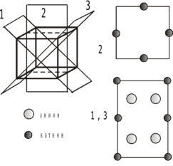 3) На рис.2 приведены сечения кубической элементарной ячейки соединения. Определите соотношение катионов и анионов в химической формуле этого соединения. Какое из трех соединений, представленных на диаграмме, имеет данную структуру? Определите координационные числа и полиэдры анионов и катионов в этой структуре.