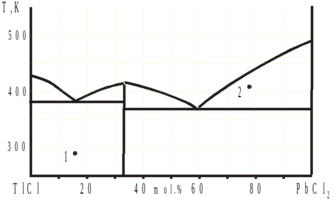 4. На рис.1 приведена схема фазовой диаграммы двухкомпонентной системы TlCl-PbCl2.