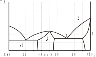 4. На рис.1 приведена схема фазовой диаграммы двухкомпонентной системы CsF-PbF2.