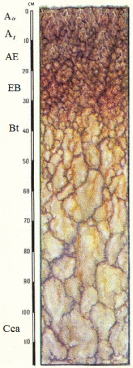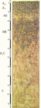 Переходный слой АЕ 0% гумуса, рН 5,8, ЕКО 10-15 ммоль/100 г,
