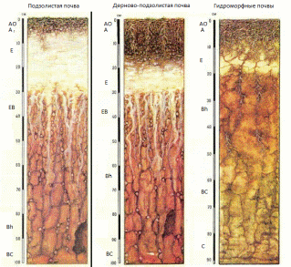 2) Оглеение связано с переувлажнением, приводит к формированию глеевого горизонта G.