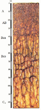 Горизонт с кальцием Вса - гумус 4-0%, рН 7,5, СаСО3 0-5%, ЕКО 40-35 ммоль/100г, гипс 0-3%, натрий в ППК 30-20%.