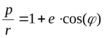Это есть уравнение кривой второго порядка, в фокусе которой находится начало координат; p и e – параметр и эксцентриситет орбиты.