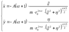 Без ограничения общности введем декартовы координаты x и y так, что бы центром поля была точка (0,0). Запишем согласно (1) и (2) второй закон Ньютона для частицы и начальные условия: