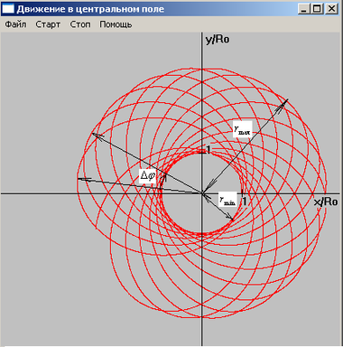 траектория финитного движения не замкнута (рис 2). Она бесчисленное число раз проходит через минимальное и максимальное расстояние и за бесконечное время заполняет все кольцо между двумя граничными окружностями.