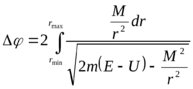 , то движение инфинитно. Если область изменения имеет две границы rmin и rmax (E<0), то движение является финитным и траектория целиком лежит внутри кольца, ограниченного окружностями r=rmin и r=rmax (рис 2). Это, однако, не означает, что траектория непременно является замкнутой кривой. За время, в течение которого r изменяется от rmin до rmax , затем до rmin , радиус вектор повернется на угол