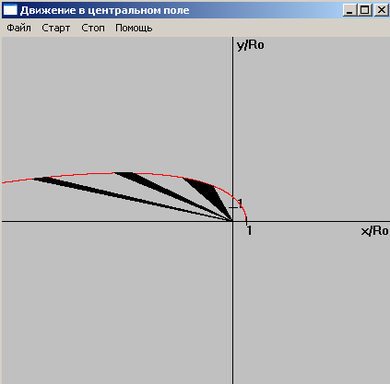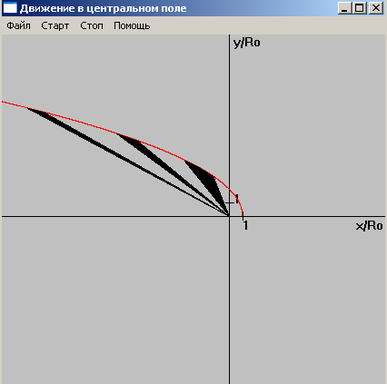 На рисунках 4,5,6 демонстрируется выполнение второго закона Кеплера. За равные промежутки времени радиус-вектор движущейся точки описывает равные площади.