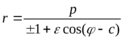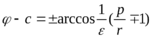 - эксцентриситет орбиты. Значение c зависит от выбора направления полярной оси в плоскости орбиты. Если ее направить на ближайшую к центру силы точку траектории, то c=0.