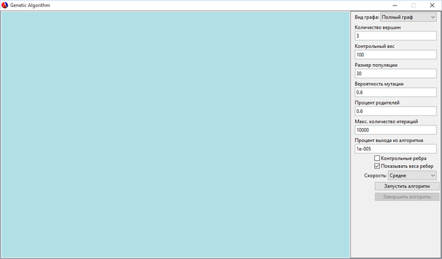 Кнопка “Контрольные ребра” – генерация контрольных ребер на вход алгоритму (только в программе, без ввода).