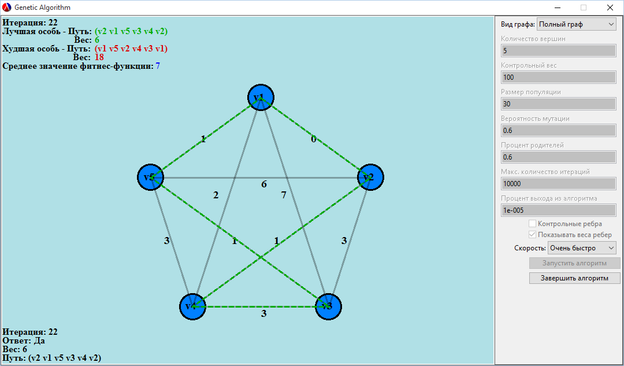 Кнопка “Показывать веса ребер” – удобно отключить при большом количество вершин (начиная от 7).