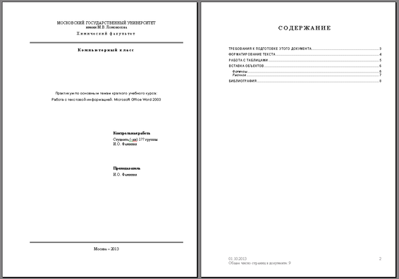 Если Вы все выполнили в соответствии с вышеизложенными требованиями, то в итоговом контрольном документе должно быть 10 печатных страниц.