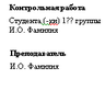 Вы получили документ, который содержит целый ряд «заготовок» в целях экономии Вашего времени выполнения контрольной работы. Не надо сразу ничего удалять или перемещать по собственному усмотрению! Это не «полигон» для «испытания возможностей и долготерпения» текстового процессора. Это учебная контрольная работа, которая квалифицирует Ваши знания, умения и навыки в работе с серьезными текстовыми документами.