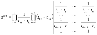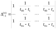 Теперь вычтем в последнем определителе последний столбец из всех предыдущих, вынесем множители из каждой строчки и столбца и разложим полученный после этого определитель по последней строчке. Получим