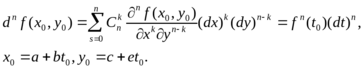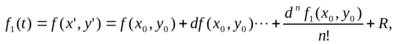 Зафиксируем значения x и y. Тогда справедлива формула Тейлора для функции f1(x)=f(x’,y’) в точке t=0: