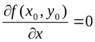 Зафиксируем переменную y, положив y=y0. Рассмотрим функцию f(x,y0), которая есть функция от x, и в точке x=x0 эта функция имеет локальный экстремум. Тогда по теореме Ферма: