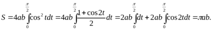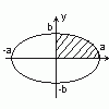 Ввиду очевидной симметрии эллипса относительно осей координат, достаточно вычислить четвёртую часть площади, расположенную в правом верхнем квадранте.