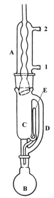 умаги) или в марлевый мешочек. При нагревании колбы пары растворителя поднимаются вверх и конденсируются в холодильнике. Образующийся пар-конденсат попадает в экстрактор. По мере подъема уровня растворителя в него переходят все большие количества экстрагируемых компонентов. После того, как уровень растворителя достигнет верхнего уровня сифона E ,он сливается через него в колбу B и процесс продолжается. Обычно экстракцию в аппарате Сокслета проводят в течение 12 – 24 часов, хотя иногда время экстракции может быть увеличено до нескольких суток. После окончания экстракции растворитель с выделенными компонентами сливают из колбы в подходящую емкость и упаривают до нужного объема.