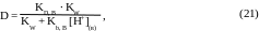 при [H+](в) >> Ka, HL, кислота в обеих фазах практически существует только в молекулярной форме и, следовательно, D = KD, HL; во второй области при [H+](в) << Ka, HL спад кривой происходит за счет диссоциации формы HL и здесь справедливо уравнение: