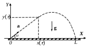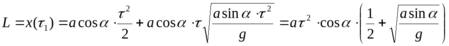 Двигатель ракеты сообщает ей при взлёте постоянное ускорение а, составляющее угол с горизонтом. Через время после старта двигатель выключают. Найти расстояние L между точками старта и падения ракеты, считая, что её движение началось без начальной скорости.