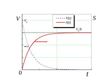 Это позволяет определить зависимость изменения скорости лодки вдоль оси OX от времени. Последнее необходимо для определения изменения координаты в каждом направлении, как интеграл соответствующих функций скорости по времени в пределах «времени переправы» :