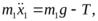 записать равенства, соответствующие второму закону Ньютона (уравнения движения) в проекциях на каждую ось координат;