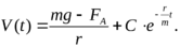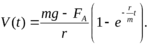 Небольшой металлический шарик массы m = 4 мг помещен в высокий сосуд с водой и отпущен без толчка. Считая, что сила сопротивления воды пропорциональна скорости движения шарика (r = 910-6 Нс/м), найти закон изменения скорости шарика от времени V(t).