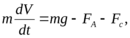 кажем, прежде всего, все силы, действующие на шарик: mg – сила тяжести, FА – архимедова сила, Fс – сила сопротивления (вязкого трения) со стороны воды. Выберем инерциальную систему отсчёта, связанную с Землёй. Поскольку движение является одномерным, достаточно использовать всего одну координатную ось Z, направленную вертикально вниз (см. рис.).
