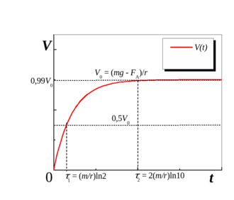 Через какой промежуток времени в условиях предыдущей задачи скорость шарика достигнет а) половины от установив-шейся величины? б) 99% от установившейся величины?