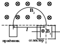 масс-спектрометре Бэйнбриджа расстояние между выходной щелью селектора скоростей и входной щелью прибора, регистрирующего ионы, l = 400 мм. Индукция магнитного поля B1 = B2 = 50 мТл. При плавном изменении напряженности электрического поля селектора наблюдаются пики ионного тока при значениях напряженности E1 = 120 В/см и E2 = 160 В/см. Определить атомные массы A1 и A2 соответствующих ионов, полагая их однозарядными. Идентифицировать эти ионы (т.е. указать, какому химическому элементу они соответствуют).